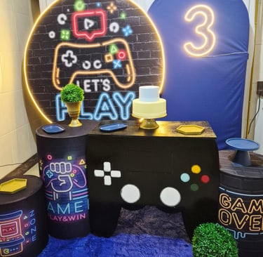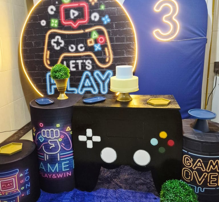 Transformamos sua festa com decorações lindas, aluguel de mesas e aluguel de brinquedos infláveis.